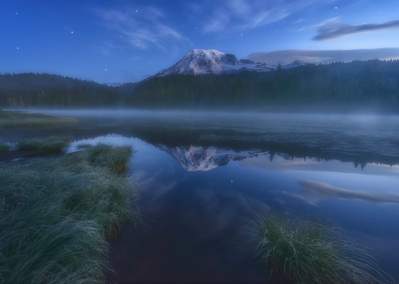 Most of the photos seen in my portfolio are either a single RAW file or two RAW files of the exact same composition, 1 for the night sky and stars and the other ( at longer exposure & lower ISO ) for the foreground.